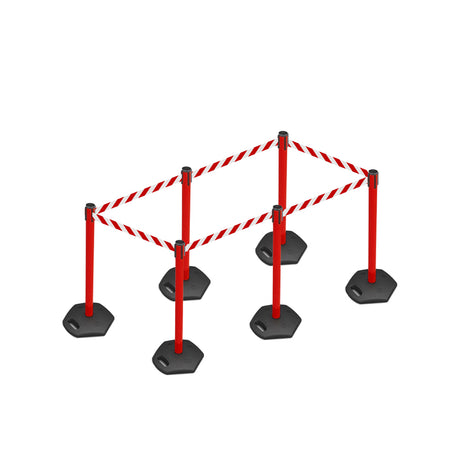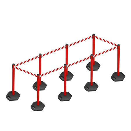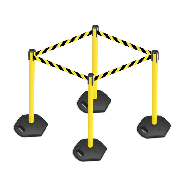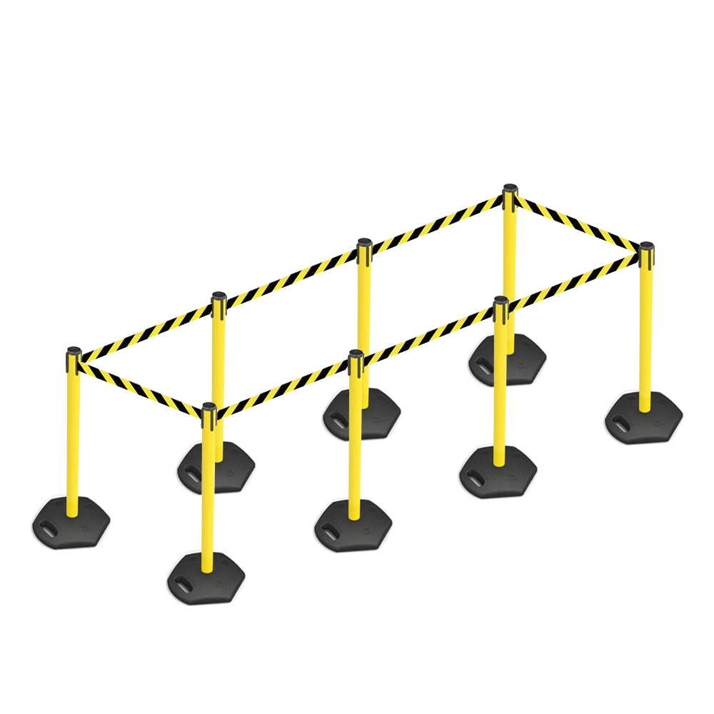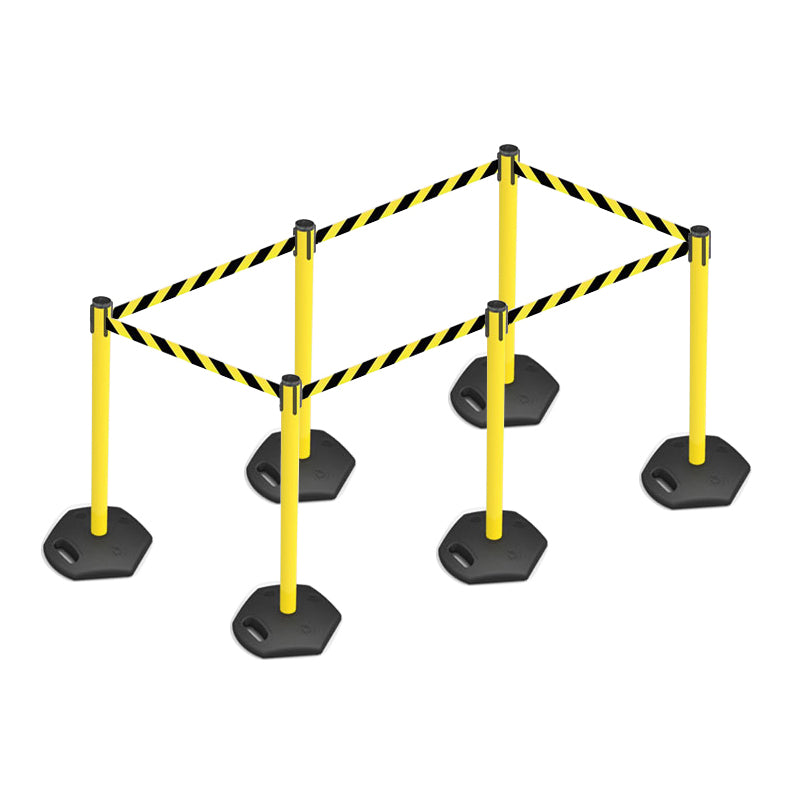 En enkel stolpe i klar gul med svart/gult band och röd stolpe med röd/vitt band som kan dras ut upp till 3 meter i längd. Utmärkt stabilitet tack vare den robusta basen som har ett integrerat handtag så att du enkelt kan flytta dina stolpar. Montering av stolparna tar inte mer än 2-3 minuter, skruva bara fast stolpen på basen och du är redo att gå.