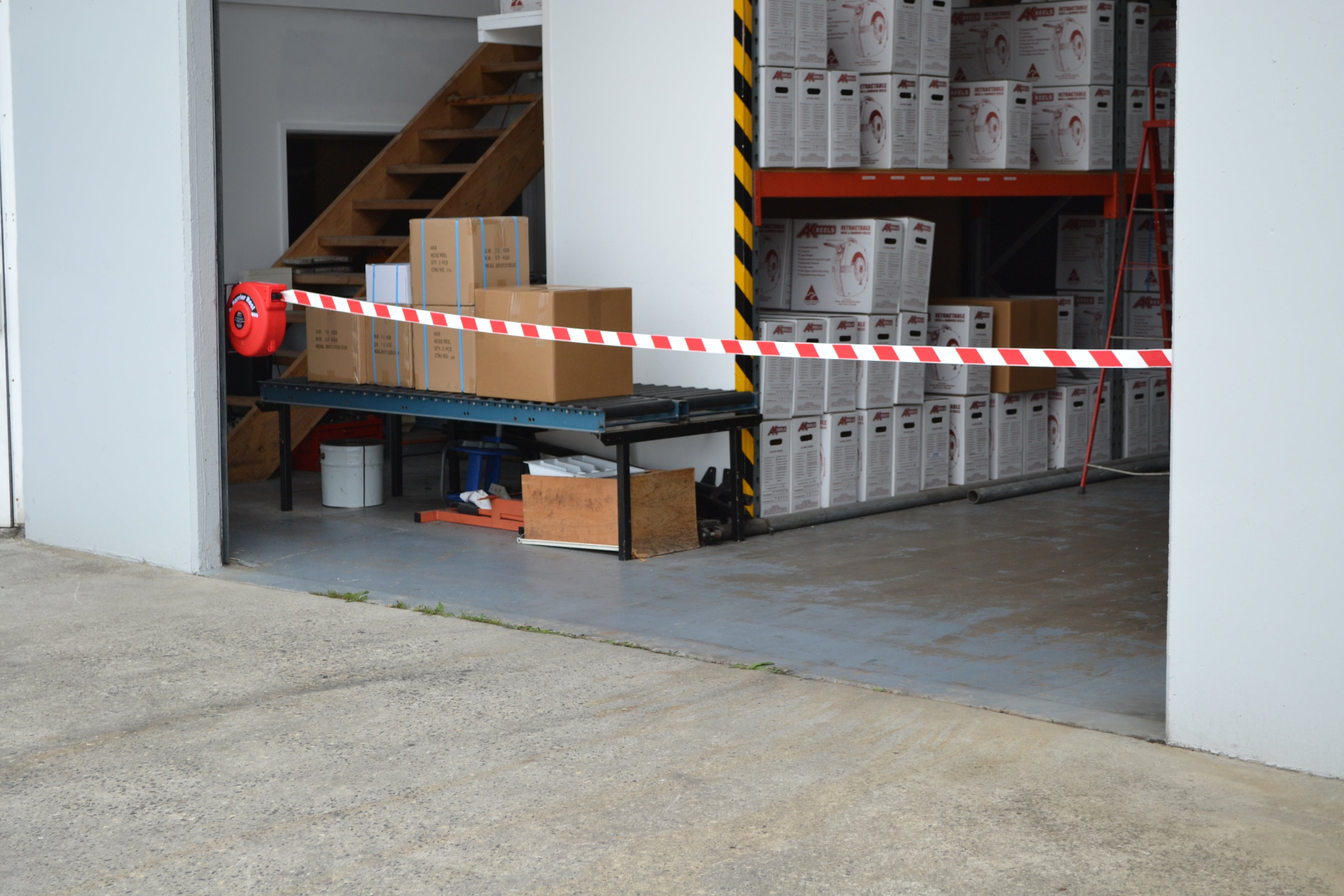Dra helt enkelt barriärbandet över och placera det på en krok eller ett fäste på motsatt vägg eller pelare. Bältet dras enkelt och snabbt tillbaka när tillträde krävs av lastbilar eller gaffeltruckar.