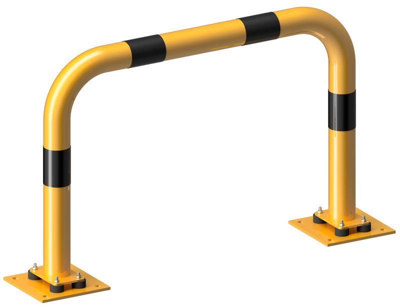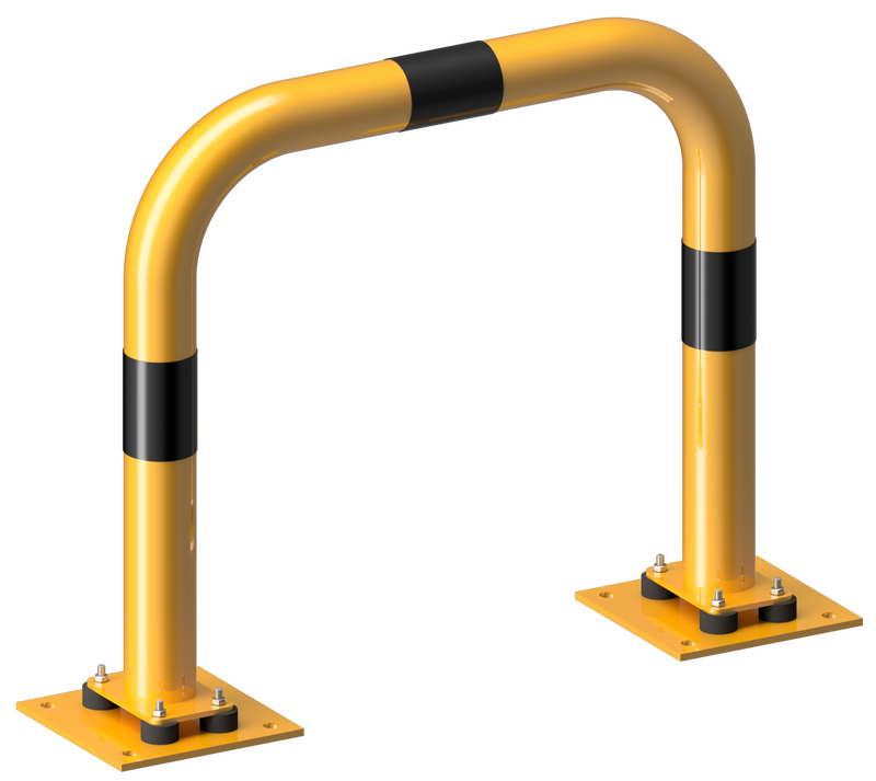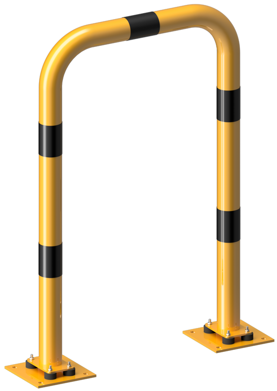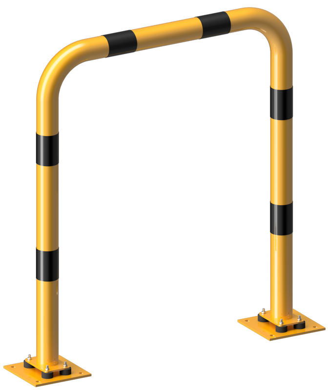 Båge med bottenplatta 220 x 220 mm, varmförzinkad, pulverlackerad gul, med svarta varningsränder.