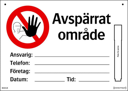 Förbudsskylt Avspärrat område - komplett med kedja, whiteboardtavla