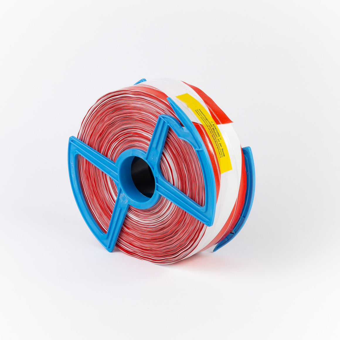Denna kraftiga avspärrningstejp är designad för långvarig utomhusanvändning. Tillverkad av extra tjock, helfärgad PE-film och förstärkt med nylontråd, tål den vind, väder och fysisk påfrestning. Levereras på en plastspole med en integrerad skärare för enkel applicering.