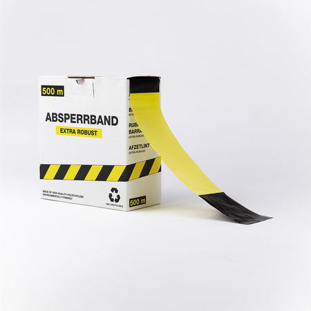 Hållbar och högstyrkebarriärtejp för krävande miljöer. Tillverkad av miljövänlig HDPE-film, är ‘Extra Robust’ barriärtejp en mångsidig allroundlösning lämplig för användning i alla områden – från byggarbetsplatser till publikhantering och allmänna säkerhetszoner.