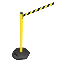 Färg: Gul stolpe, stabil svart gummibas med integrerat handtag och ett svart, indragbart bälte.