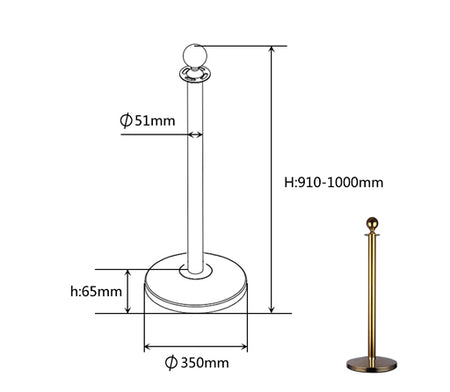 -18st - Avspärrningsstolpe Basic Ball Head (Mässing)