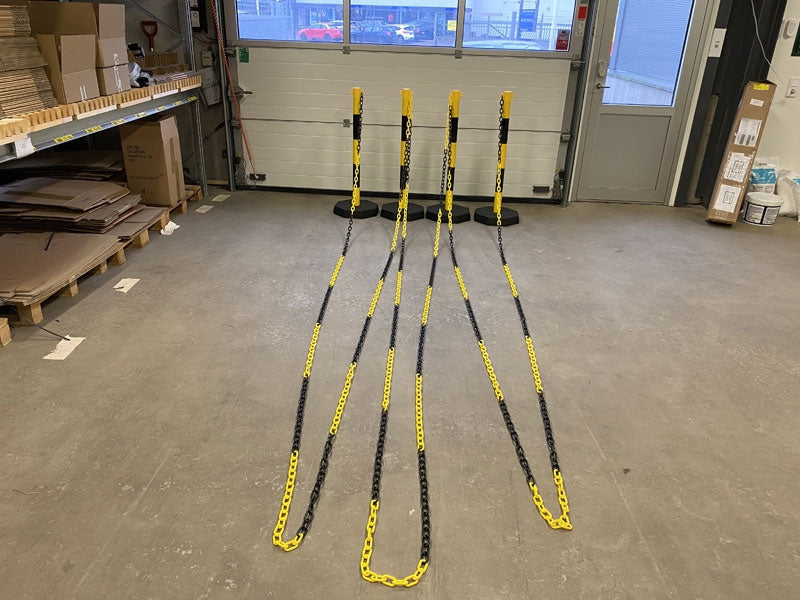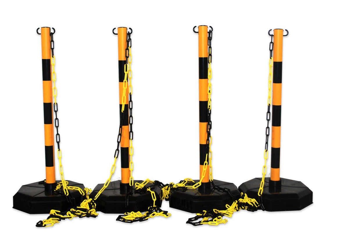 Avspärrningspaket -Robust-, 4st Plaststolpar inkl. 25m kedja (Gul/Svart)