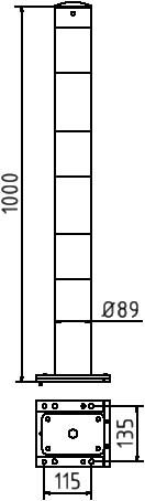 - Material: Rund stålrör, varmförzinkat, Ø 89 mm (finns även i Ø 76 mm och 70x70 mm)