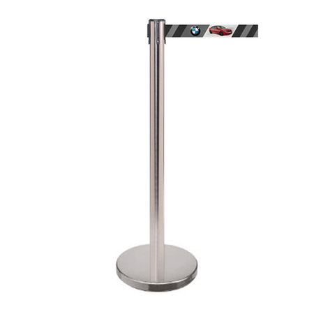 Vår Flexibarrier -Custom Belt Print Basic- erbjuder en högkvalitativ bältesbarriär med specialtryckt indragbart bälte. Vi kan trycka vilken färg, text eller logotyp som helst på ditt bälte. Finns även med ett extra långt 5m bälte, ekonomiskt eftersom du behöver färre stolpar.