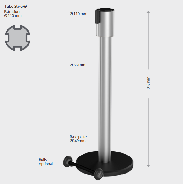 Beltrac Storetrac XXL är en mycket solid mobil barriär som levereras med ett 10 meter utdragbart band. Mycket lämplig för industrier och både för inomhus- och utomhusbruk. Barriären är tillverkad av aluminium och det 10 meter utdragbara bandet inkluderar ett centrifugalbromssystem som förhindrar att bandet rullar tillbaka in i sitt hölje i hög hastighet om bandet plötsligt skulle släppas. Det är även möjligt att montera ett extra utdragbart band till det befintliga 10 meter bandet. Vänligen kontakta oss för mer information. Förutom det utdragbara bandet är Beltrac Storetrac Mono XXL även utrustad med en mottagare så att du kan fästa bandet från en annan Beltrac-barriär till den.