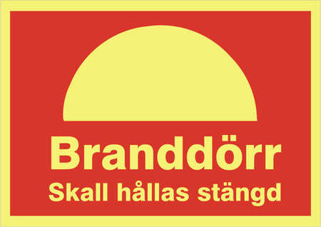 Brandskylt i form av plastskylt i A5 eller A4 med budskapet "Branddörr skall hållas stängd".