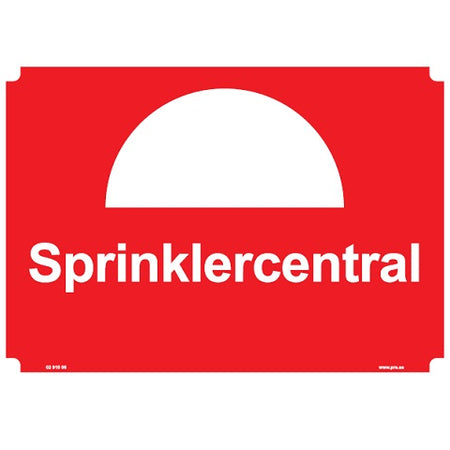 Brandskylt i form av plastskylt i A5 eller A4 med budskapet "Sprinklercentral".