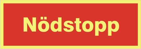 Brandskylt i form av plastskylt i A5 eller A4 med budskapet "Nödstopp".