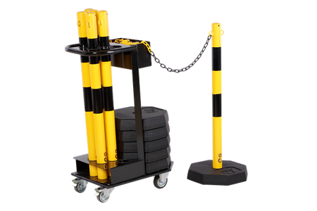 Förenkla hanteringen av ditt barriärsystem med denna mångsidiga vagn – perfekt för evenemangsarrangörer, lager eller platser som kräver frekvent uppsättning och nedtagning av stolp- och kedjebarriärer.