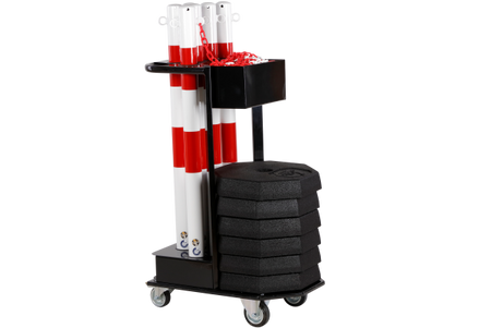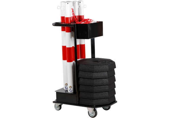 - Lätt rörlighet: Utrustad med robusta hjul, denna vagn möjliggör smidig och enkel transport av dina barriärer.