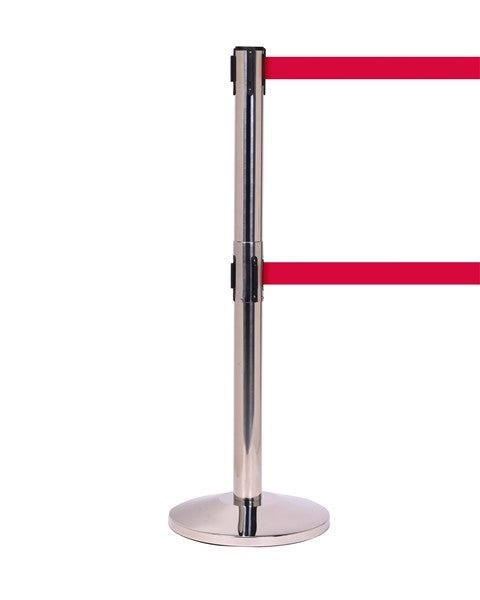 En prisvärd dubbel utdragbar barriär som stöds av en 3-års tillverkares garanti. Fullspäckad med funktioner till detta pris och den har till och med en bromsad säkerhetsfunktion som gör att bandet långsamt kan dras tillbaka in i basen.