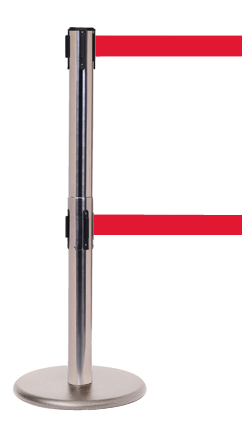 Pro Twin har dubbla bälten som ger maximal kontroll över kundkön. Det nedre bältet hindrar fotgängare från att 'ducka' under bältet, hjälper till att hålla barn i kö och ger vägledning för synskadade som använder käpp.