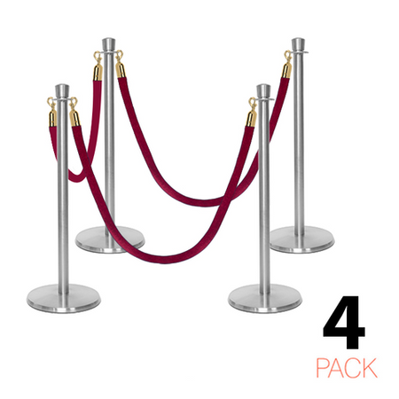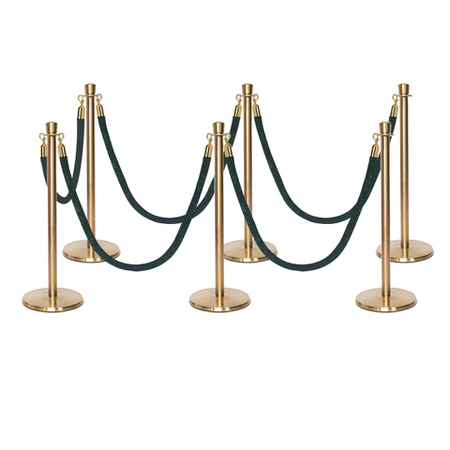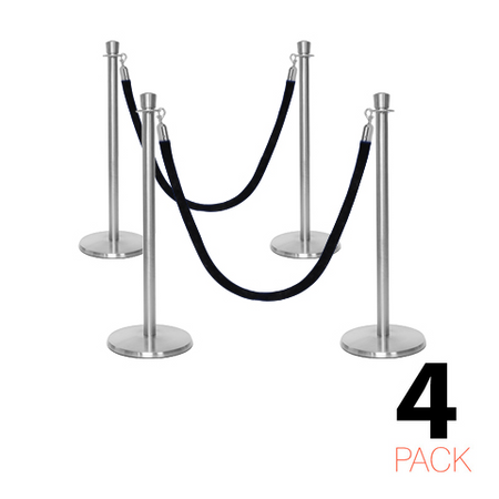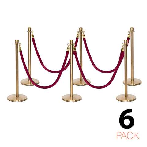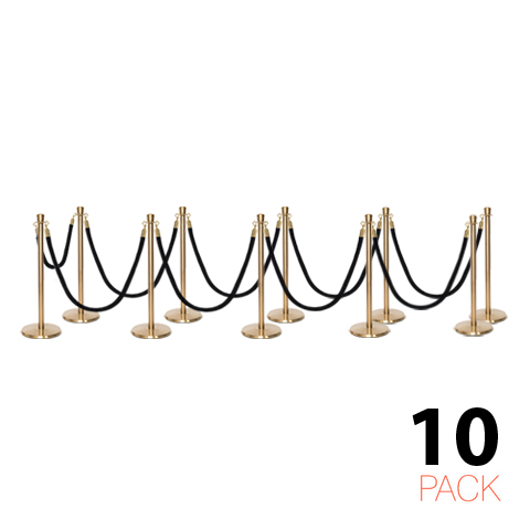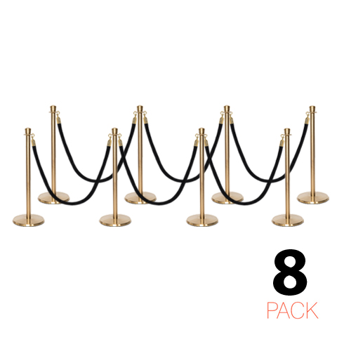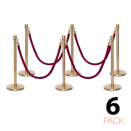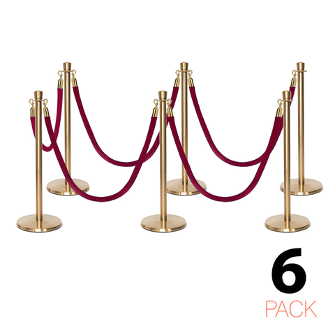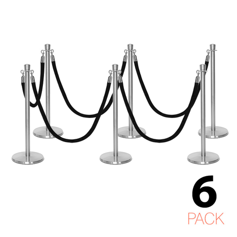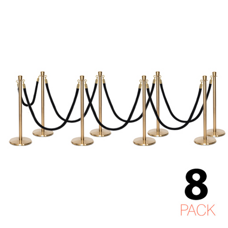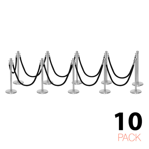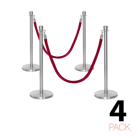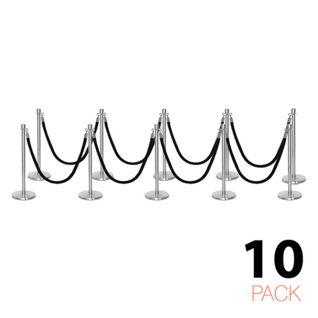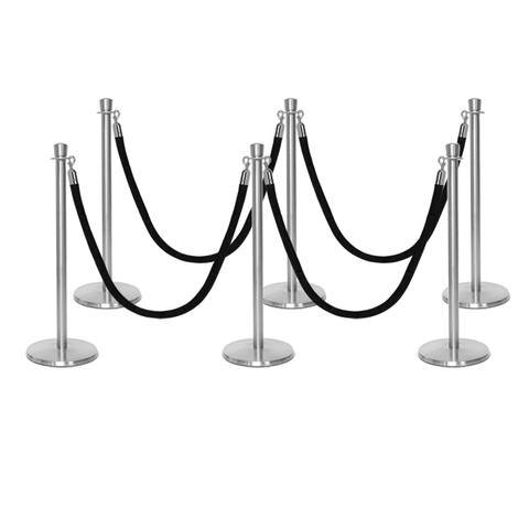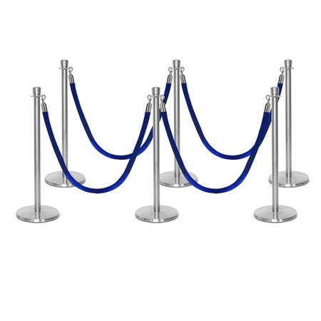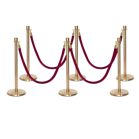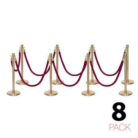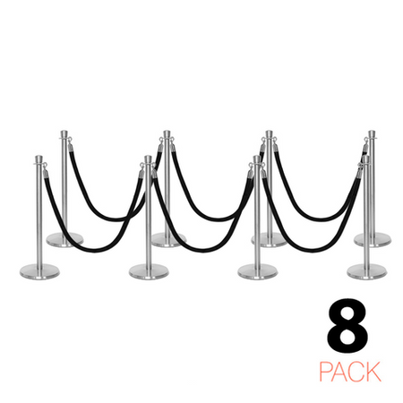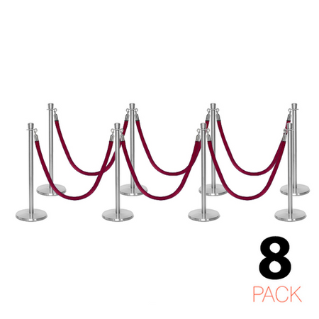 Detta stiliga och lyxiga stolpe och rep-barriärset kan ses överallt från högprofilerade restauranger till receptioner. Idealisk för evenemangsplatser, museer, gallerier och utomhusbarer och restauranger, möjliggör denna barriärstolpe ordnad köbildning vid evenemang och platser, samtidigt som den erbjuder en professionell känsla för besökarna till din anläggning. De premiumkvalitativa köbarriärstolparna i attraktiv finish visar en sofistikerad, elegant look med sin kronformade topp och har en solid konstruktion i rostfritt stål. Med en rund, lågprofilerad men ändå tung bas ökar dess stabilitet och säkerhet i alla miljöer. Den levereras med ett mjukt, lyxigt sammetrep som snabbt kan fästas på avspärrningsstolpar med hjälp av fjäderkrokar i varje ände
