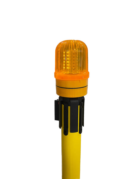 Öka säkerheten på arbetsplatsen genom att lägga till vår Flexibarrier SafeLight på din stolpe med utdragbart band. Denna lampa är designad för vår Flexibarrier Plus Retractable belt barrier men passar även andra stolpar med en rördiameter på 6,3 mm. De mycket tillgängliga, inkluderade, LR20-batterierna är enkla att byta ut utan verktyg - skruva bara av botten så hittar du batterierna där. Vi testade batteritiden på vår anläggning i Sverige (inomhus 20 grader Celsius) och lampan lyste fortfarande efter 300 timmar!