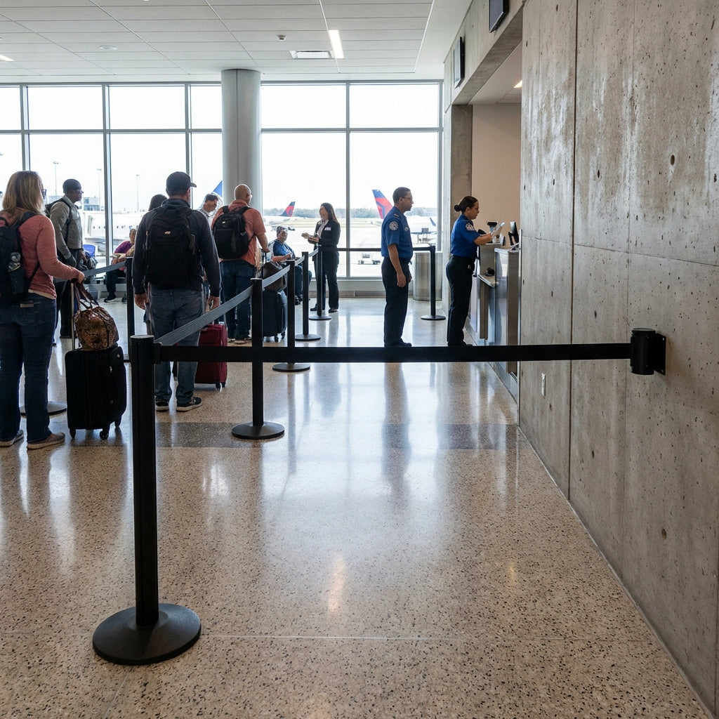 FlexiBarrier Väggmonterad Barriär - Ekonomi - (2,3 - 4,5 m bälte)