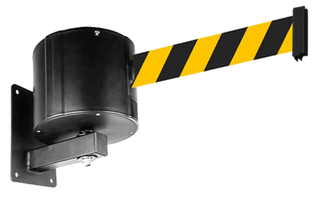 Flexibarrier Väggmonterad Avspärrning – Pro är en väggmonterad avspärrning med utdragbart band som finns med 16 eller 23 meters bandlängd – perfekt för avspärrning av mycket långa sträckor som i lager, terminaler, flygplatser och industrimiljöer.