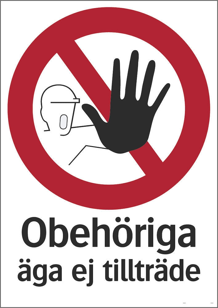 Förbudsskylt - Tillträde förbjudet i flera material och storlekar för tydlig, professionell märkning. Passar för arbetsplatser, lager, offentliga miljöer och fastigheter där tydlig information och säkerhet är viktigt.