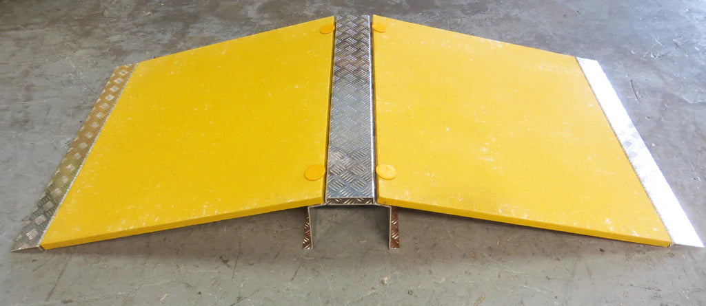 Rampens konstruktion består av en kraftig aluminiumtunnel med tre överliggande gallersektioner som enkelt monteras med hjälp av stift och Z-klämmor. Varje sektion har fasade kanter för att ytterligare minska risken för snubbelolyckor.
