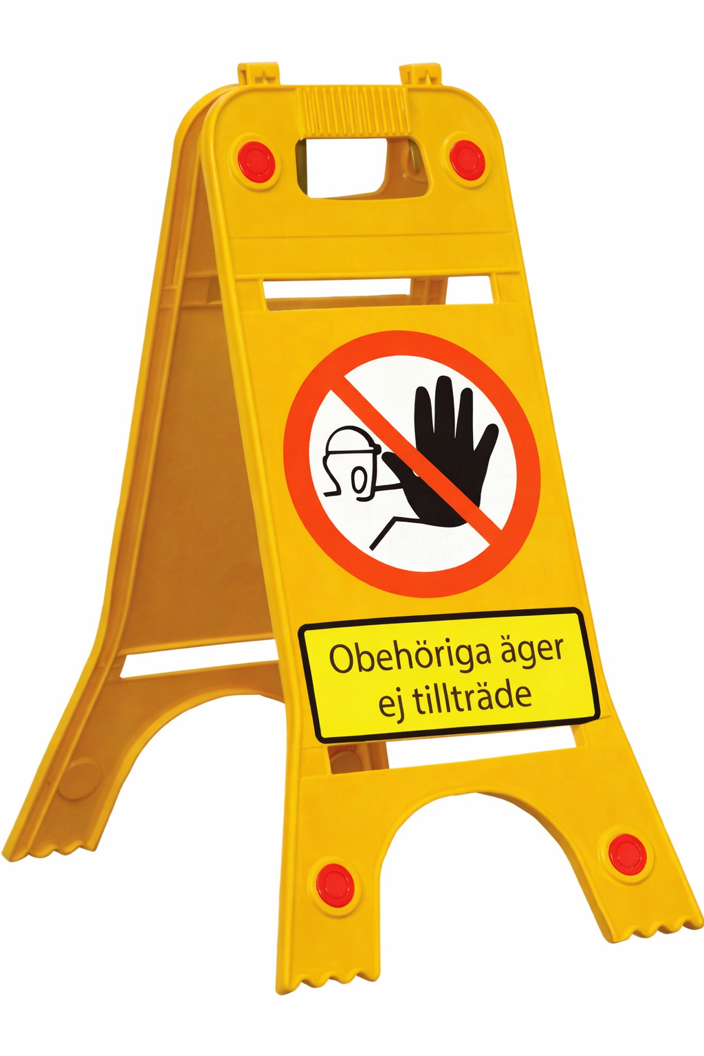 Håll din omgivning säker och informerad med vår golvstående skylt med tydligt förbudsbeteende för obehörigt tillträde. Skylten är designad för att placeras strategiskt i områden där tillträde är begränsat eller där särskilda risker förekommer – för att förhindra obehörig passage och minska risken för olyckor eller säkerhetsincidenter.