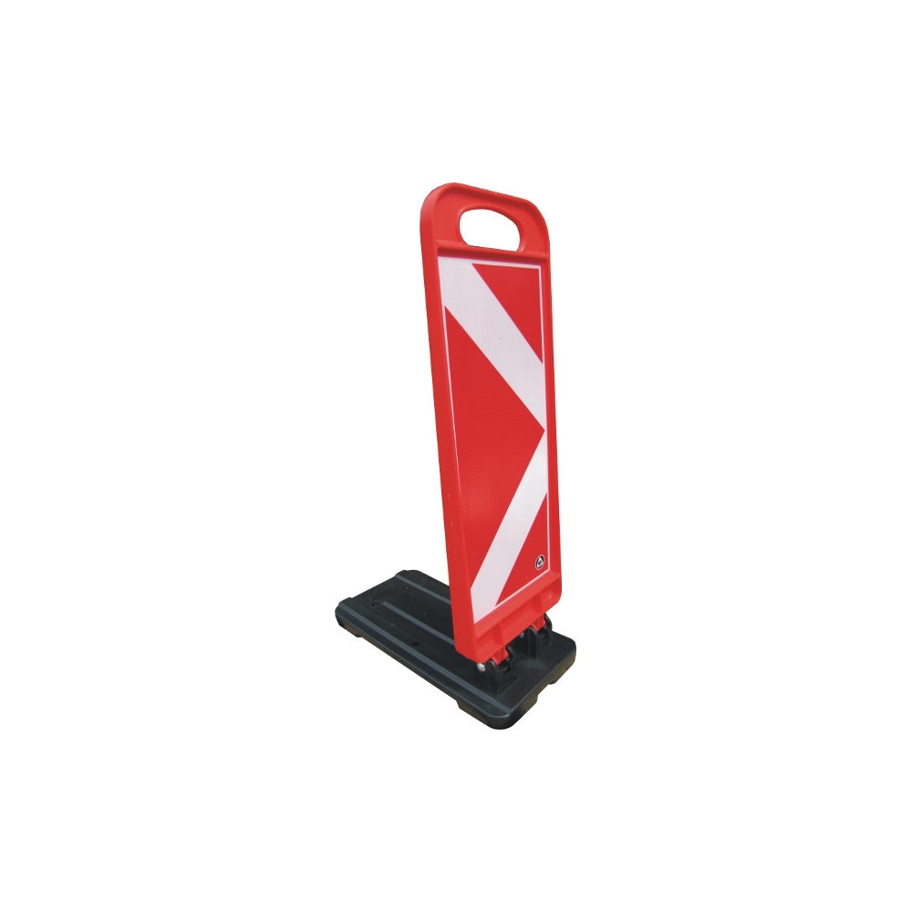 Dess högkontrastfärg och dubbelsidiga reflekterande film säkerställer synlighet både dag och natt. Den robusta PP-PVC-ramen och halkfria gummibasen ger förbättrad stabilitet, även under hårda väderförhållanden. Det inbyggda bärhandtaget gör det enkelt att transportera och placera där det behövs.
