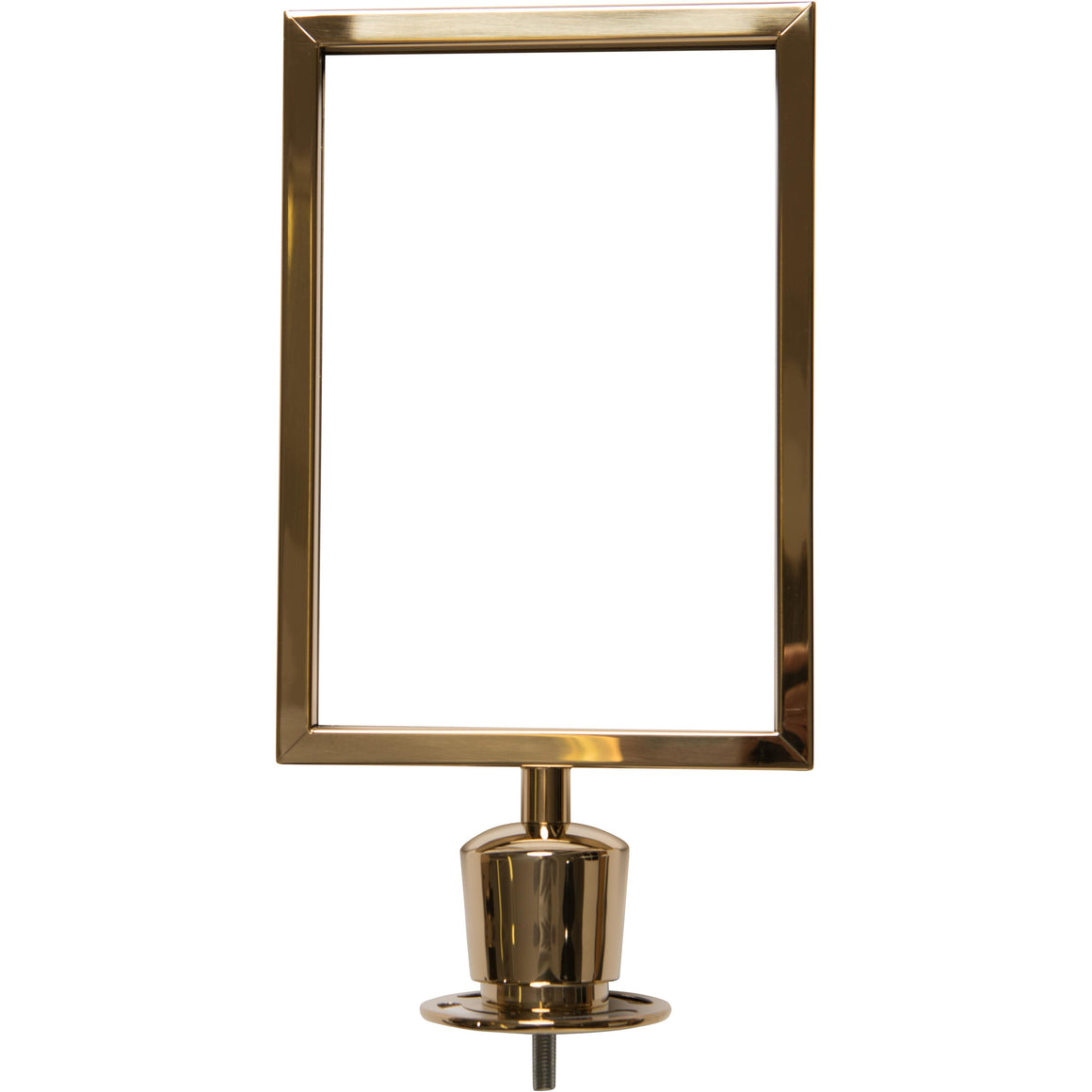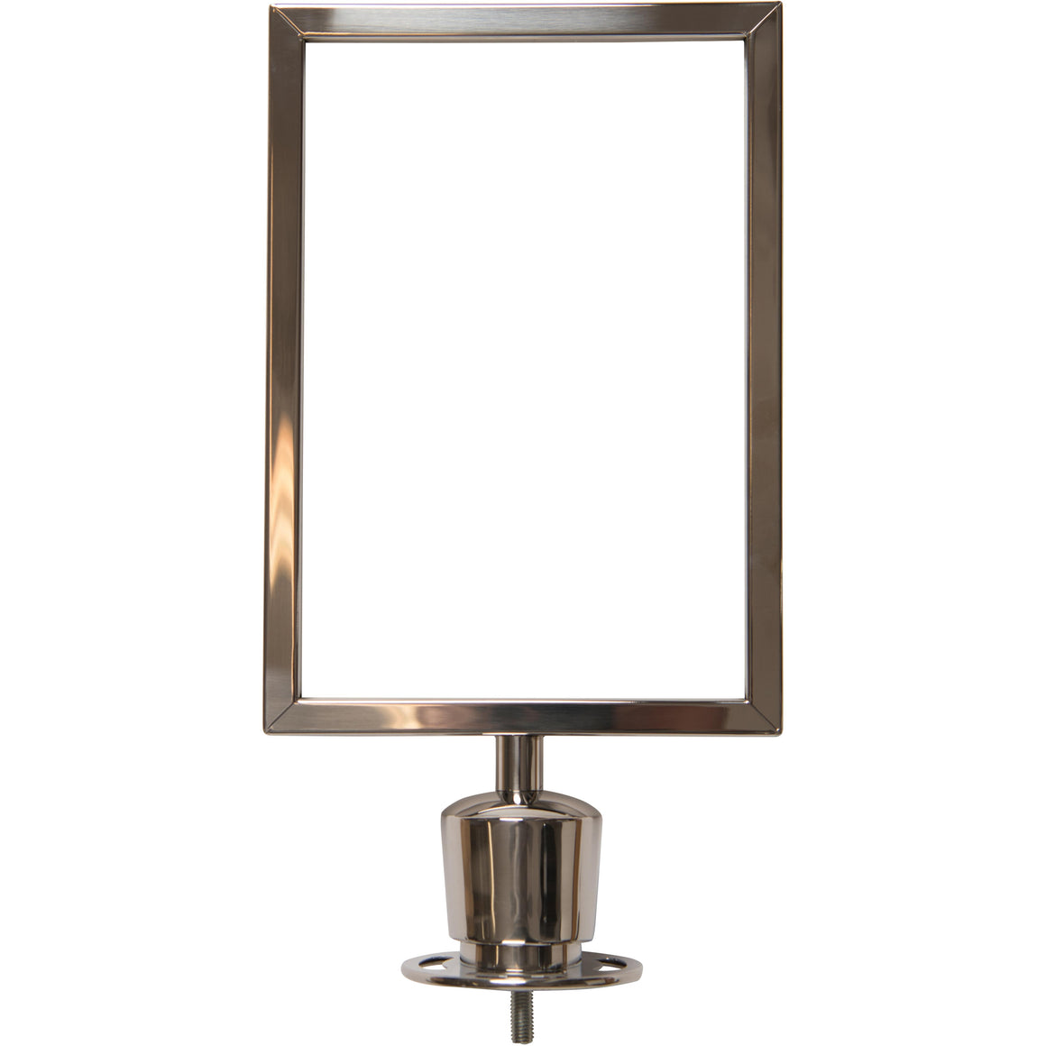 Elegant A4-skyltshållare som passar på alla Flexibarrier repbarriärer. Levereras i polerad krom och mässing.
