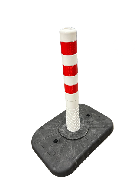 Skapa ett stabilt och mycket synligt trafiksepareringssystem med Körfältsavskiljare med Trafikavgränsare. Denna sats kombinerar en flexibel Trafikavgränsarstolpe med en robust rektangulär bas, vilket möjliggör snabb installation utan permanent markfäste.