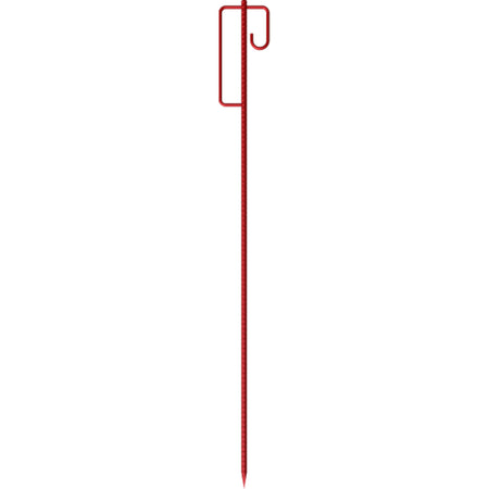 Metallstängselpinne med svetsad U-bygel för fastsättning av våra barriär- och snönät, avspärrningsband, kablar, rep etc. Det rödmålade metallspjutet är tillverkat av en räfflad stång med ø12mm med smidd spets för enkel montering i marken.