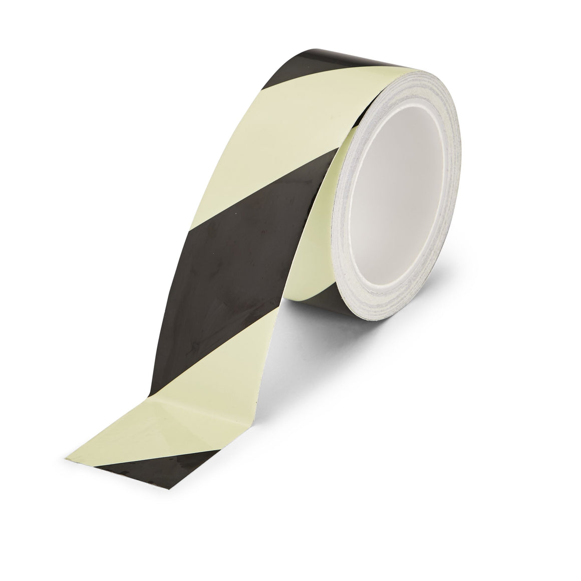- Fotoluminiscerande (lyser i mörkret) markeringstejp för golv, väggar, socklar och dörrkarmar