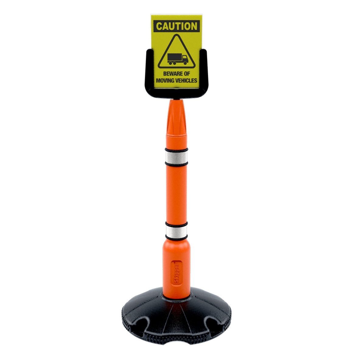 - Skipper-barriärstolpe och bassystem inkluderar (1) 1m Skipper-barriärstolpe, (1) bas för Skipper-barriärstolpe och (1) A4-skyltshållare