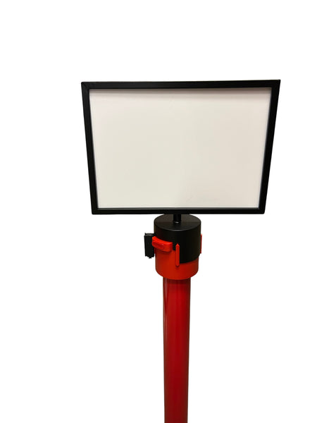 Denna A4 vertikala skyltshållare är specifikt utformad för att passa Flexibarrier Outdoor 1050 (10.6m) och Safetypro 1050 utdragbara bältesstolpar.