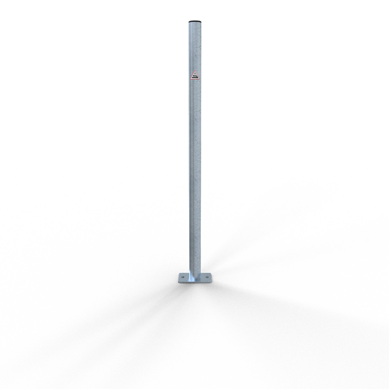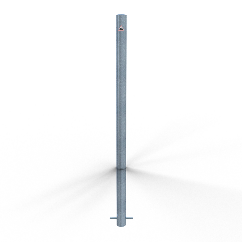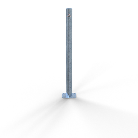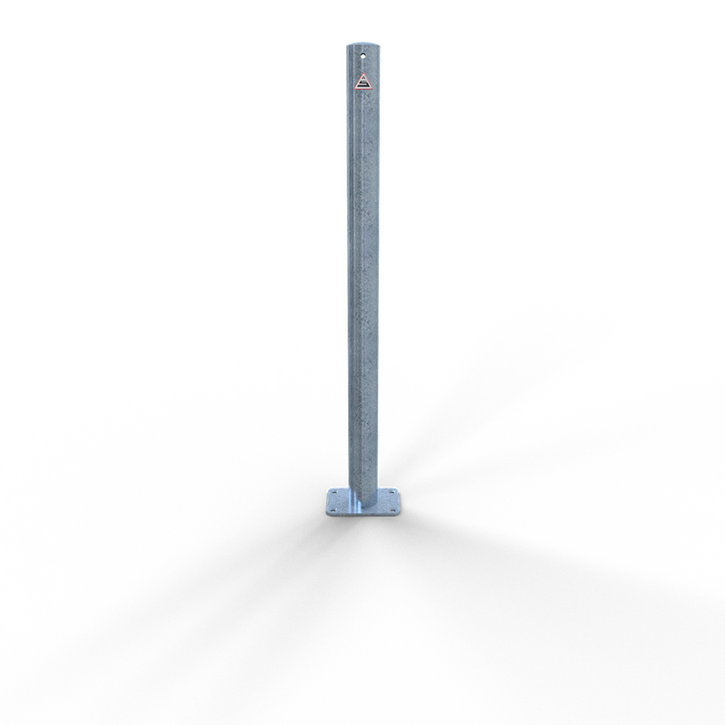 - Stålbarriärstolpe kan gjutas i betong med hjälp av ett markankare eller fästas i marken med pluggar med hjälp av en bottenplatta