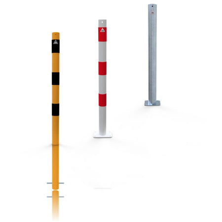 - Stålrörspollare finns endast i varmförzinkat utförande eller varmförzinkat utförande med vit eller gul pulverlackering med högsynliga röd/svarta reflekterande ränder