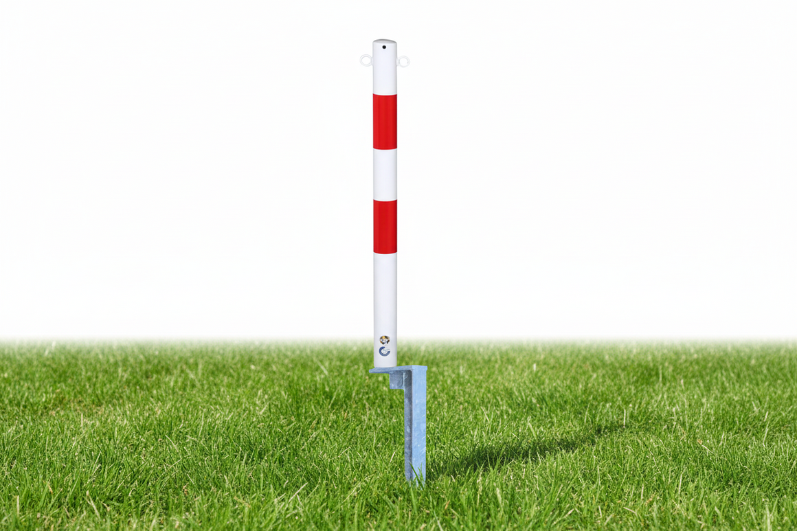 Stålstolpe med markspets (Ø60 mm) för snabb och säker avgränsning.