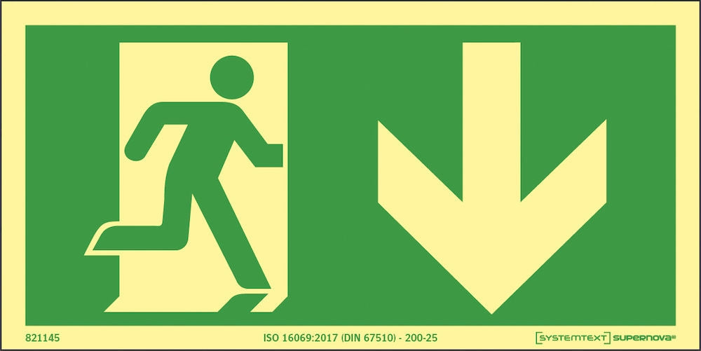 Supernova® Anvisningsskylt - Utrymningsväg ner (flera storlekar)
