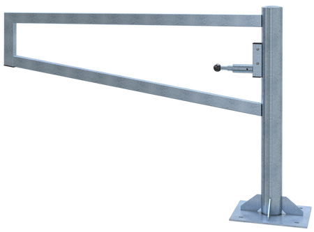 Dessa svängbara grindar erbjuder en pålitlig och anpassningsbar lösning för att begränsa tillgången till vägar, industriområden, byggarbetsplatser och gångzoner. Designad för smidig horisontell rörelse, fungerar grinden utan behov av en stödjande stolpe, vilket ger maximal fri höjd och enkel hantering.