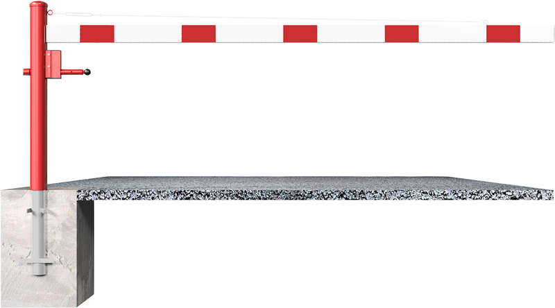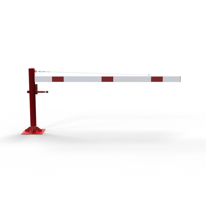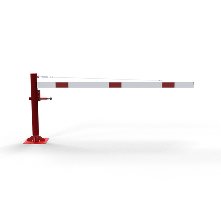 Aluminiumbarriärarmen är vitbelagd med röda reflekterande ränder för utmärkt synlighet, medan den svängbara stolpen är tillverkad av varmförzinkat stål för långvarigt korrosionsskydd utomhus.