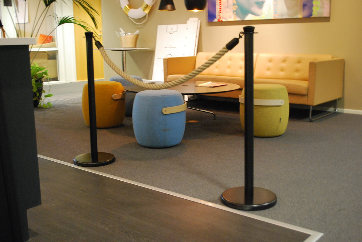 Set av 2 Beltrac Avspärrningsstolpe i svart för rep -Luxor- (2x svarta stolpar + 1x 150cm hamparep)