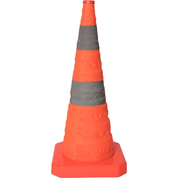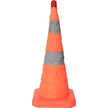 Mycket praktisk kon som du enkelt kan fälla ut. Konen har en varningslampa som lyser upp den inifrån, vilket skyddar den mot väder och vind. Utmärkt för användning i olycksområden och som markör för avspärrningar och farozoner.
