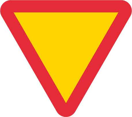 Väjningsplikttavla, här av modell Ovillkorlig väjningsplikt.