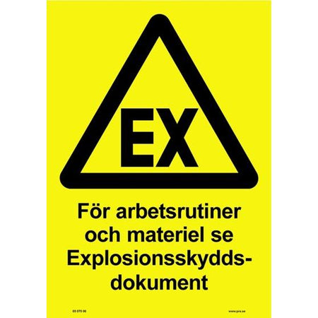 Varningsskylt. Ex- för arbetsrutiner A4 i flera material och storlekar för tydlig, professionell märkning. Passar för arbetsplatser, lager, offentliga miljöer och fastigheter där tydlig information och säkerhet är viktigt.