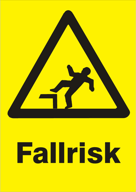 Varningsskylt - Fallrisk i flera material och storlekar för tydlig, professionell märkning. Passar för arbetsplatser, lager, offentliga miljöer och fastigheter där tydlig information och säkerhet är viktigt.