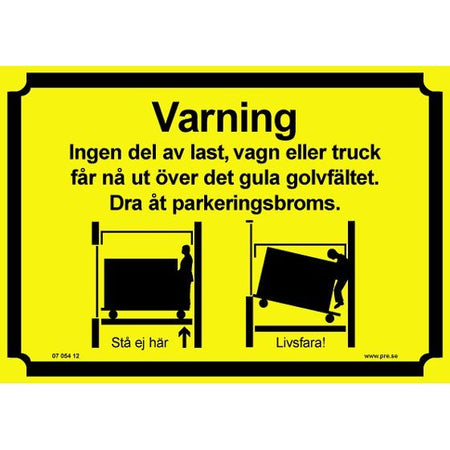 Varningsskylt. Ingen last över gult fält i flera material och storlekar för tydlig, professionell märkning. Passar för arbetsplatser, lager, offentliga miljöer och fastigheter där tydlig information och säkerhet är viktigt.