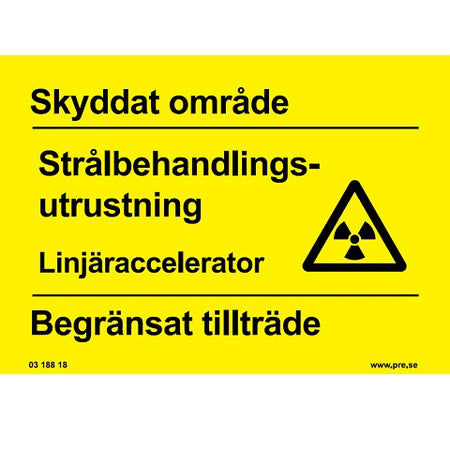 Varningsskylt. Skyddat omr.Strålbeh.utrustn.