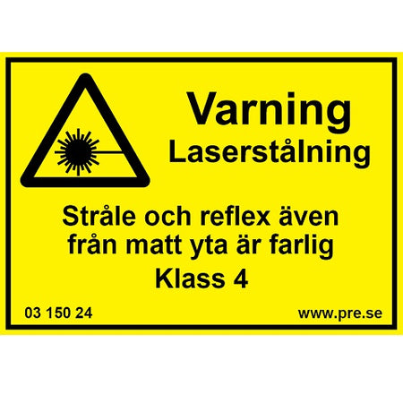 Varningsskylt.- Varning Laserstrålning. Klass 4.